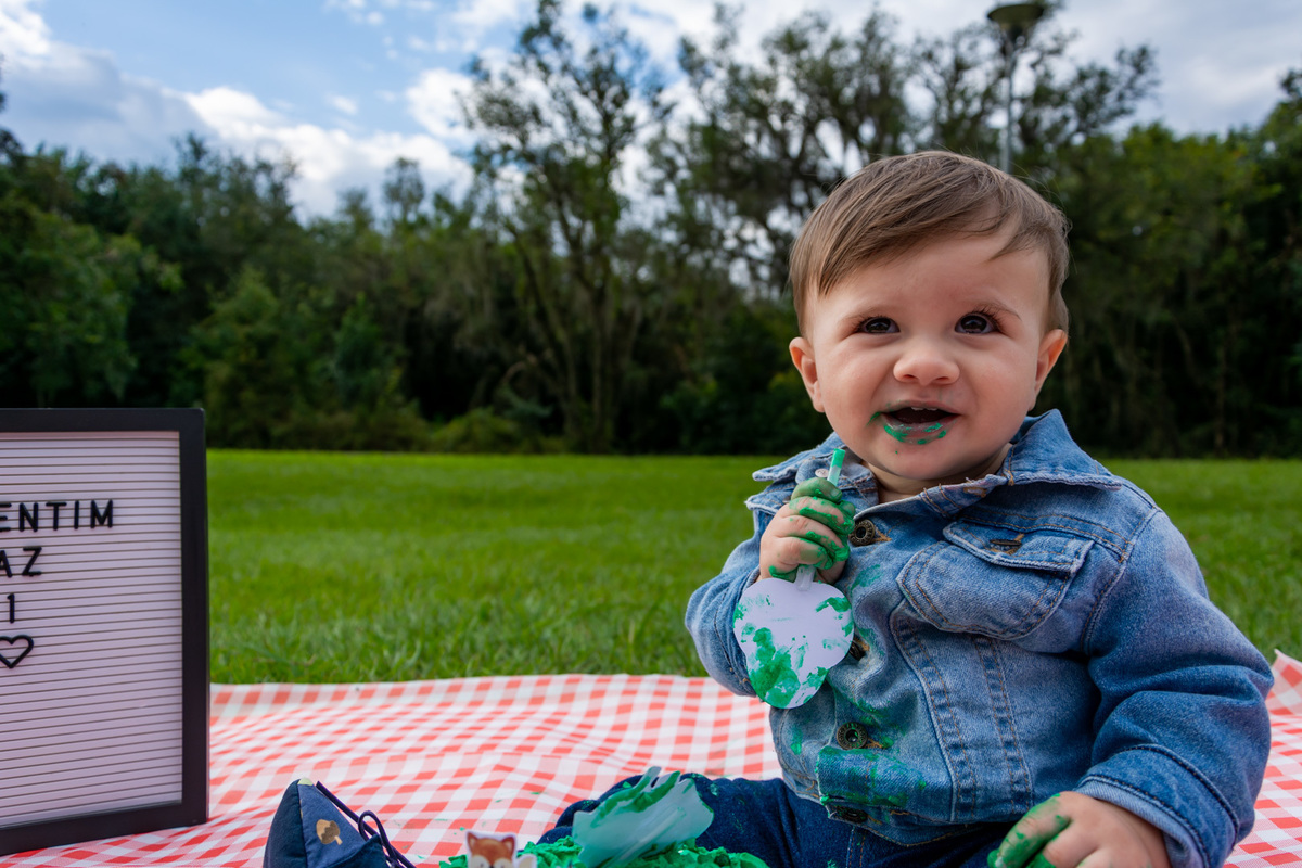Era pra ser um smash the cake, mas sabe quando a criança não quer se sujar? Haha.